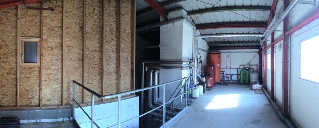 - Holzhackgutkessel (320 kW) mit 300 Kubikmeter Holzhackgutspeicher im Gebäude selbst