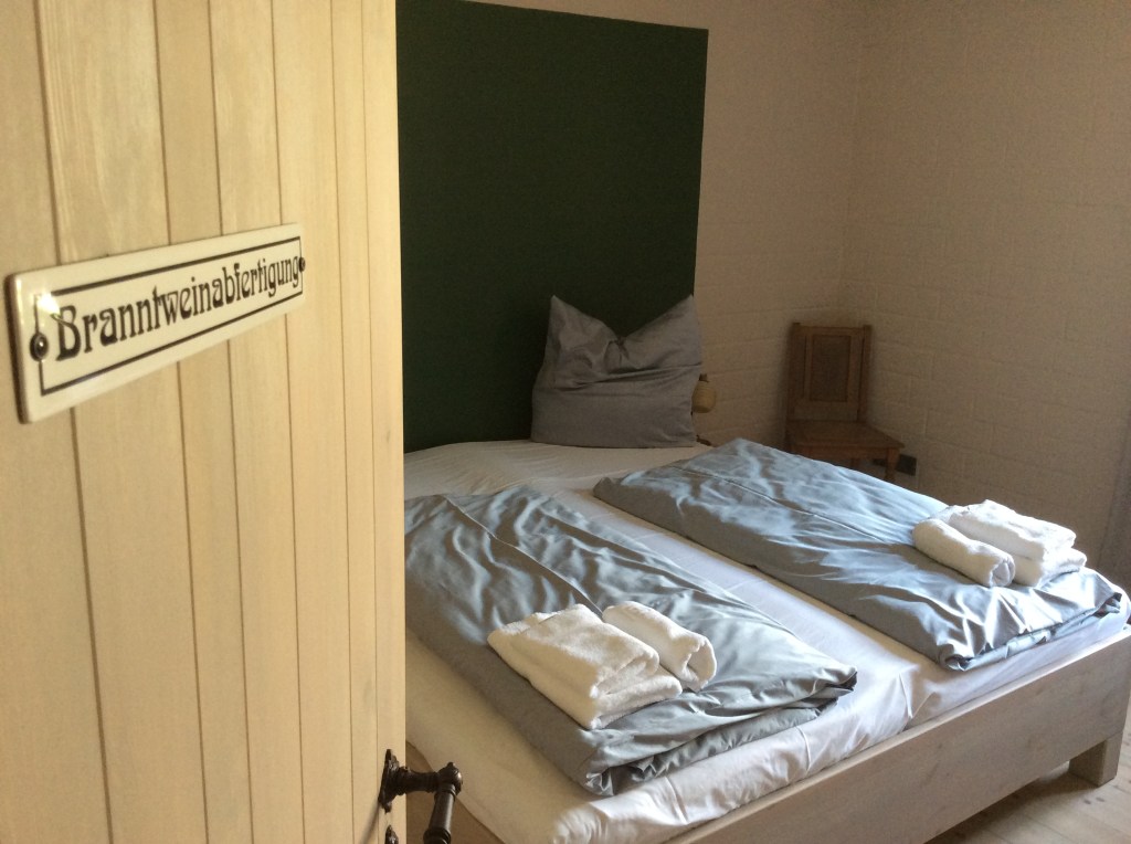 Insgesamt 15 individuell eingerichtete Zimmer für bis zu 30 Gäste stehen zu Auswahl: 6 Appartments mit 2 Zimmern und Bad, welche auch als Einzelzimmer zu mieten sind, ein Zweibettzimmer mit Küche und das Storchennest mit 2 Etagen. Jeder Raum ist anders, sie wurden nach den ursprünglichen Raumbezeichungen der Brennerei benannt.